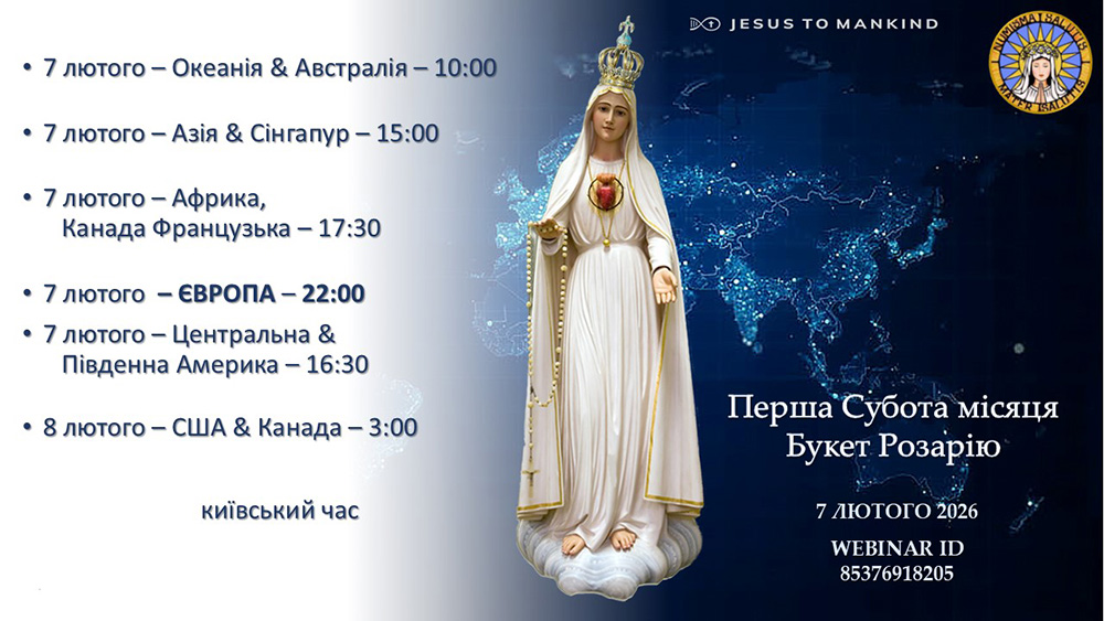 Запрошуємо вас взяти участь у всесвітньому Букеті Розарію Першої Суботи місяця для Матері Спасіння.